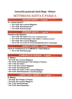 - Calendario delle celebrazioni per la Settimana Santa e la Pasqua in Comunità Pastorale e in Parrocchia